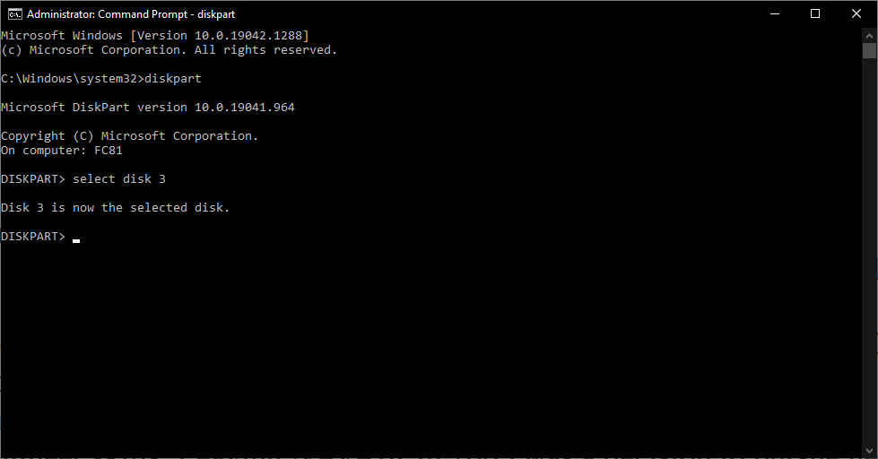 Select the disk (e.g. disk 3)…