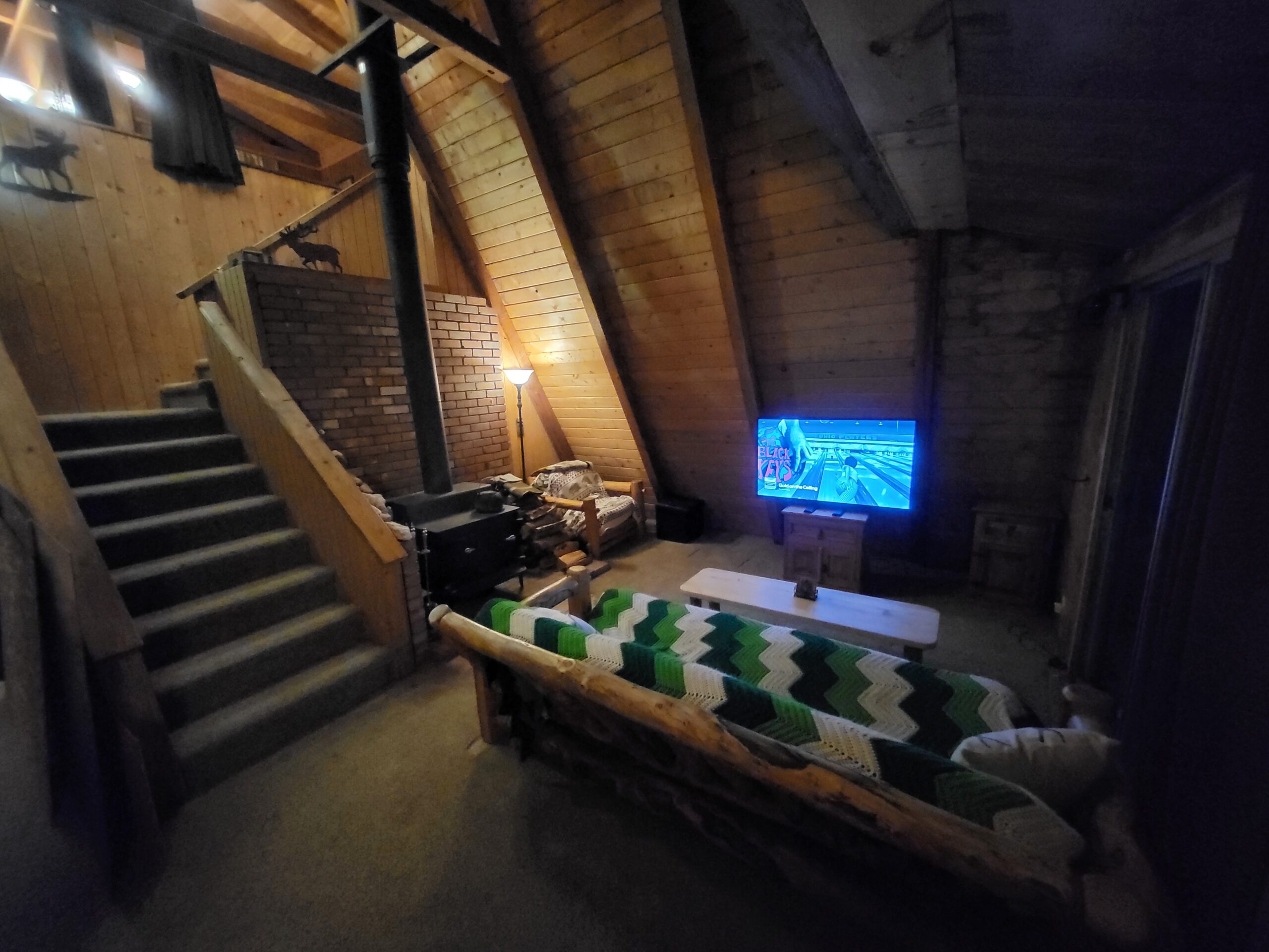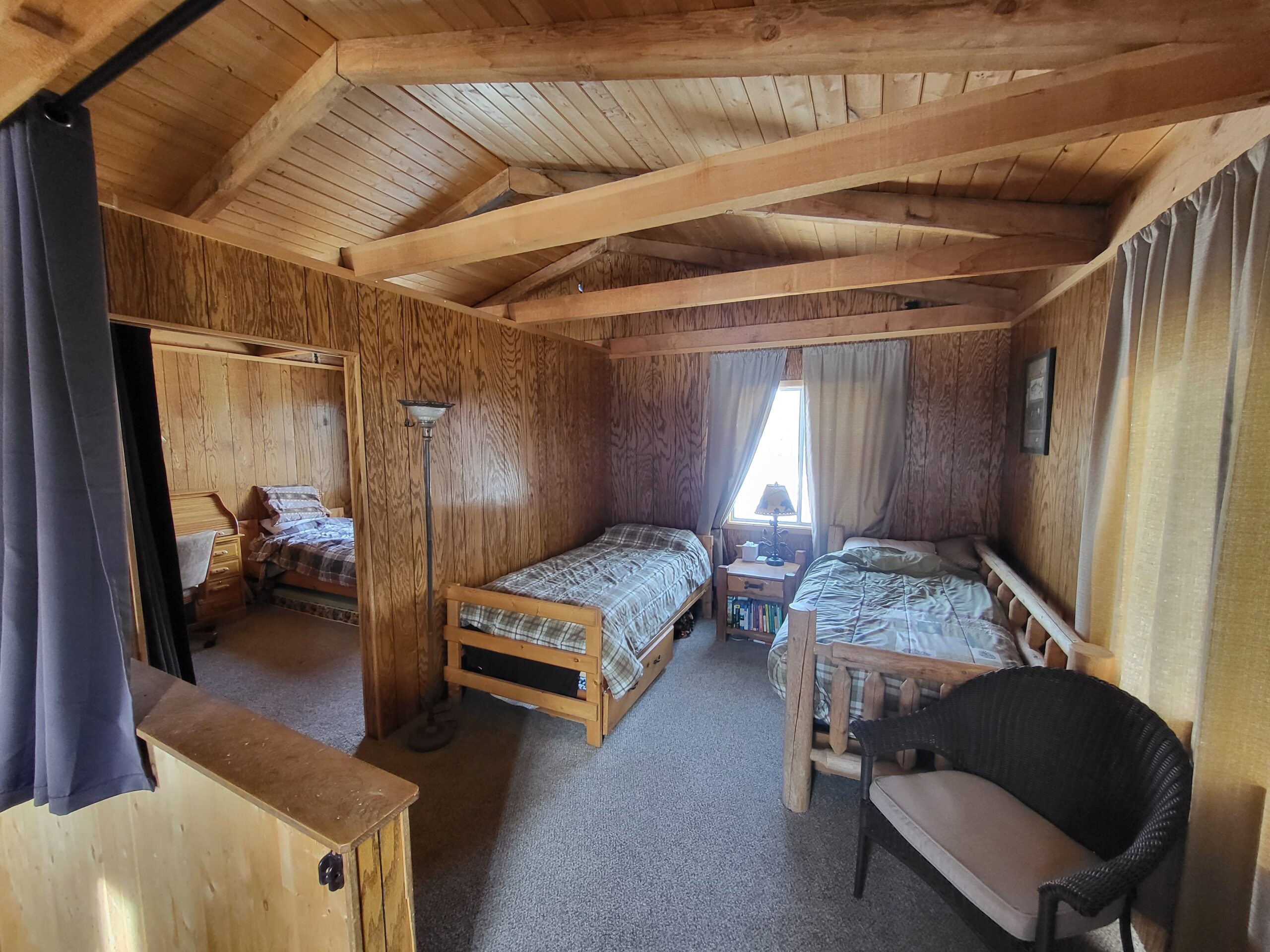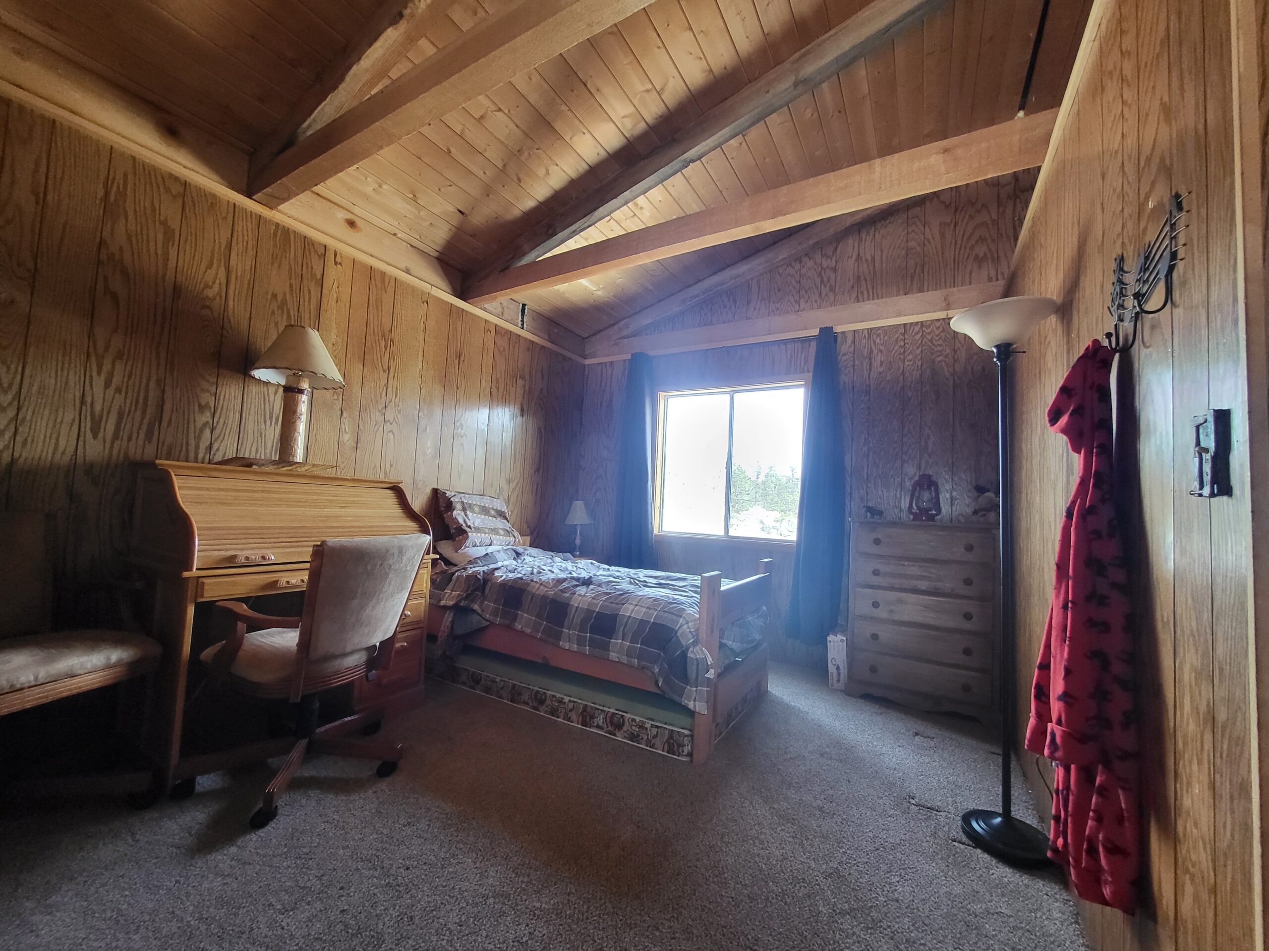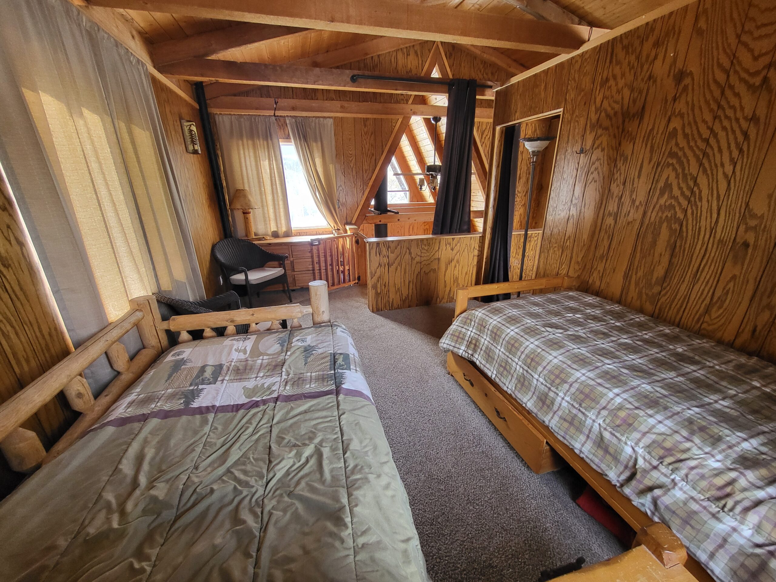 These are just some interior pics of the cabin’s loft. I’m finally getting to the point where the major project’s are done (anything where there were still studs showing in the walls). I just have one little area in a closet downstairs to finish, then I’ll get some more pics.